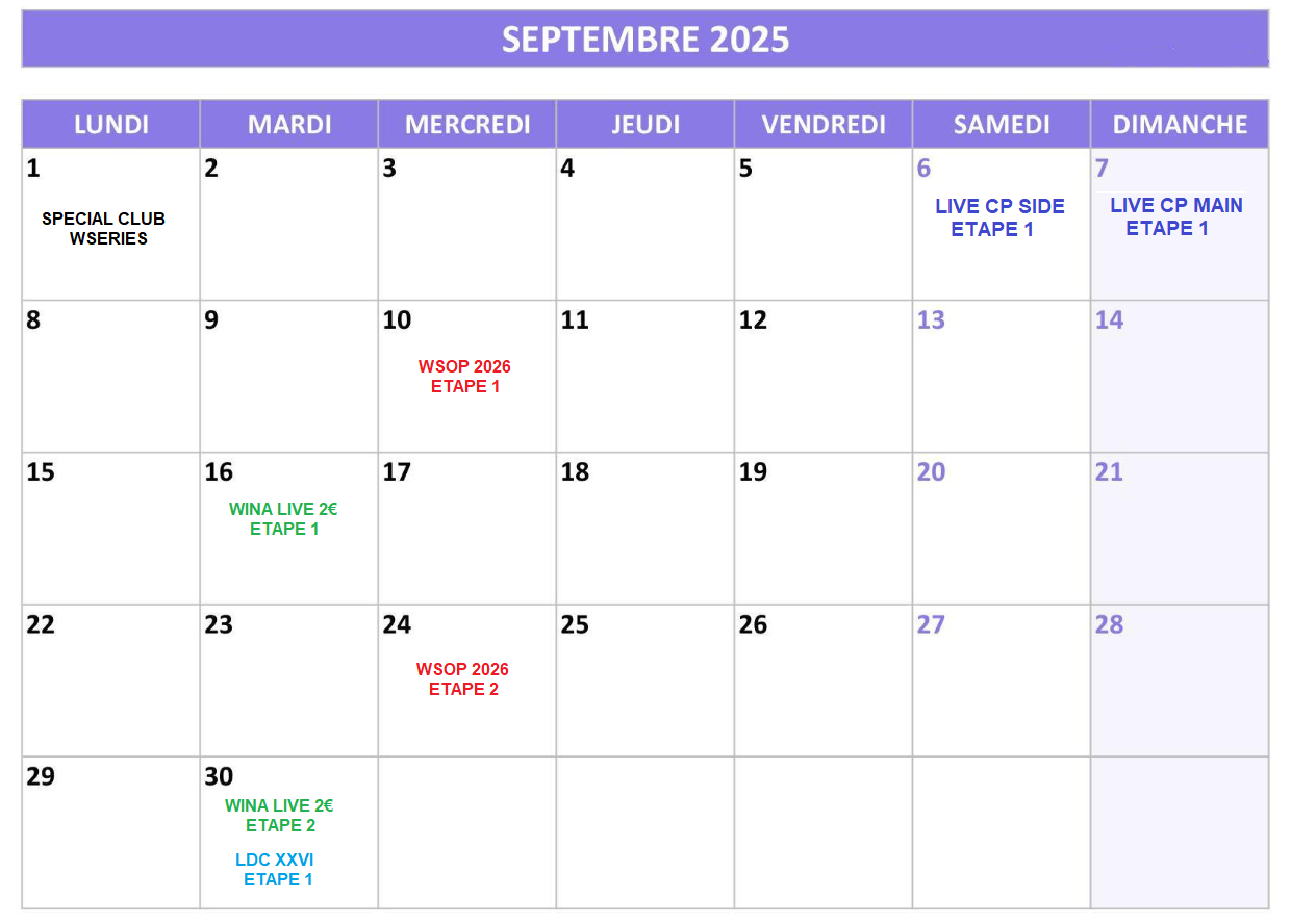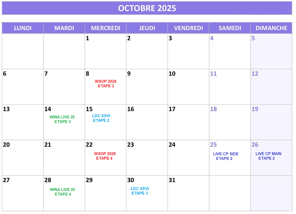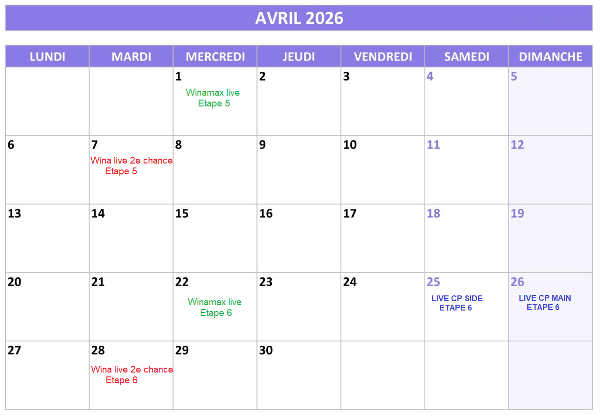 Les dates des live sont indiquées ici : https://caenpoker.fr/?page_id=10379