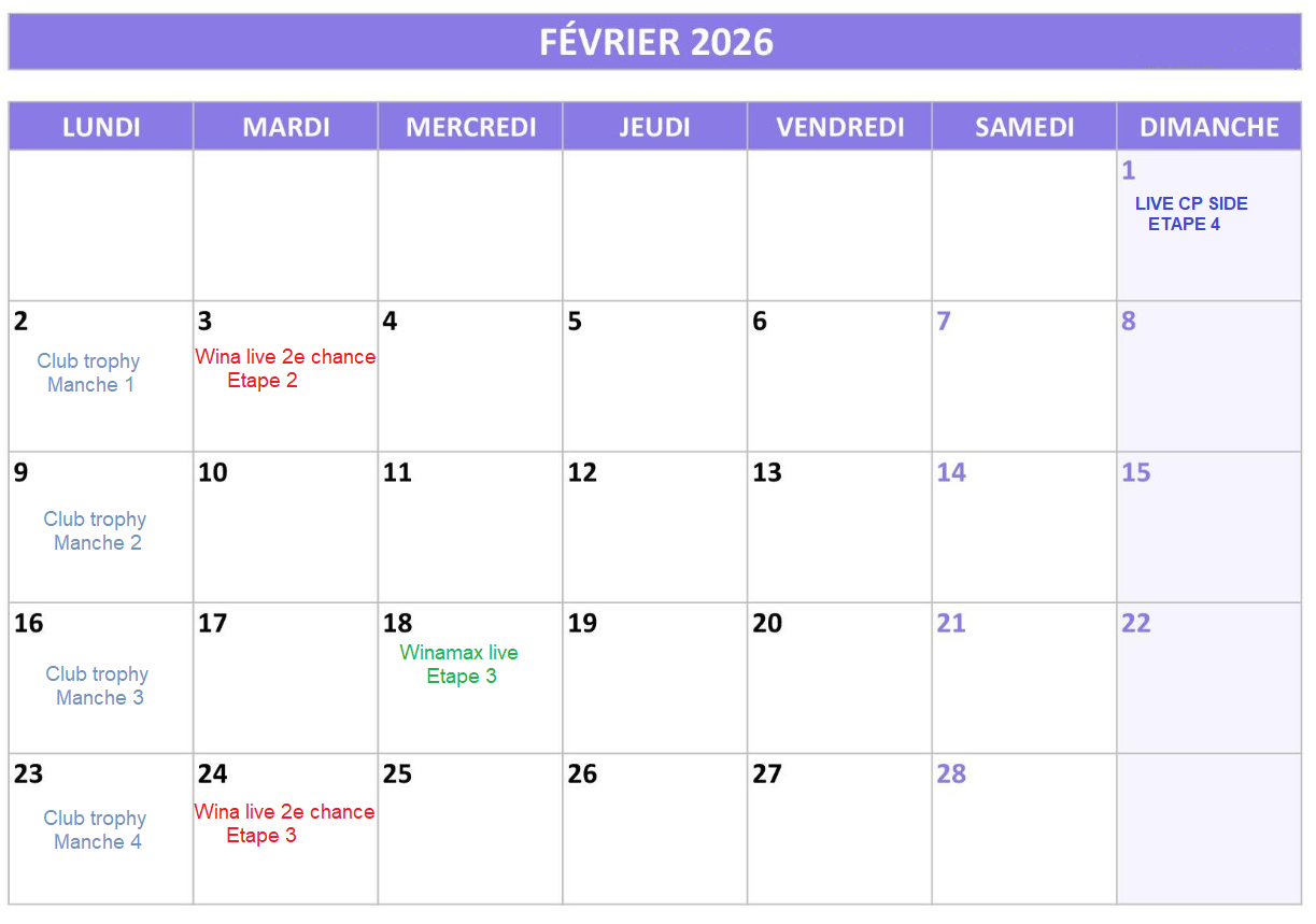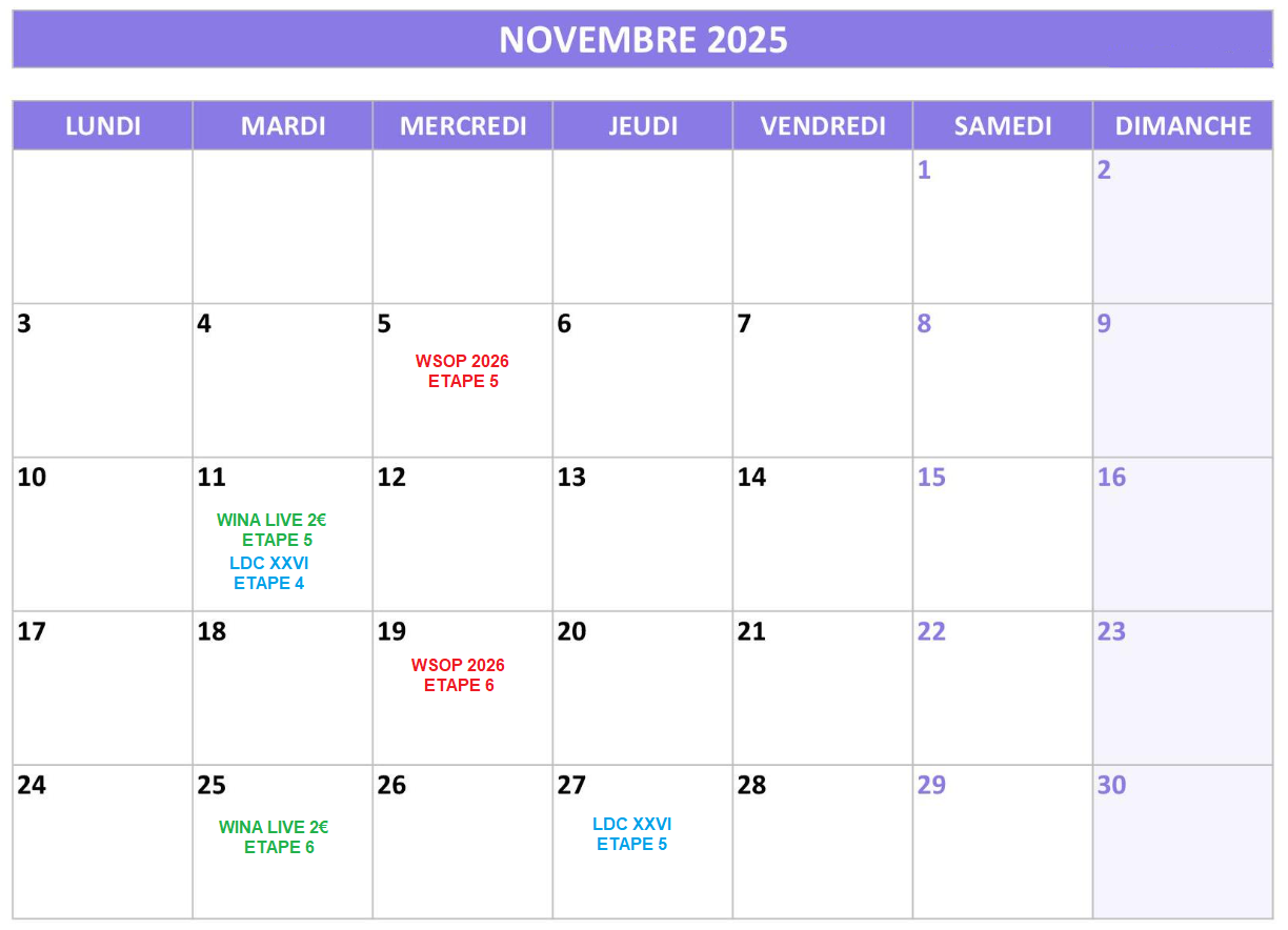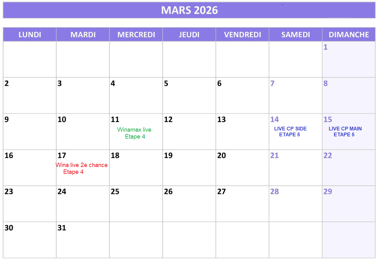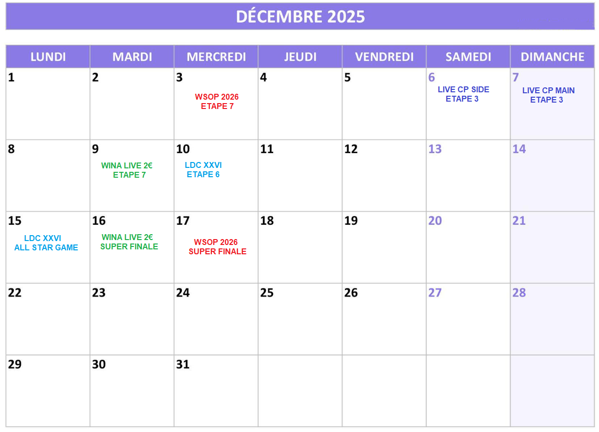 Les dates des live sont indiquées ici : https://caenpoker.fr/?page_id=10379
