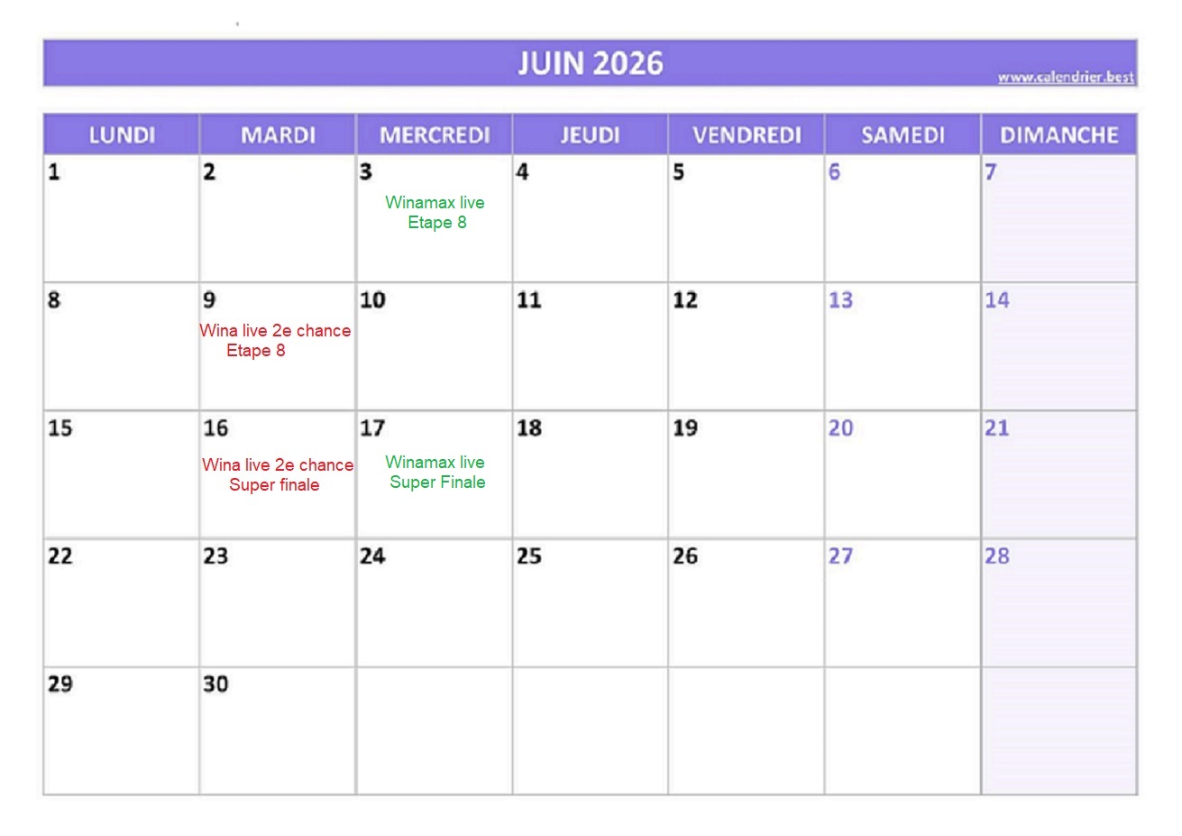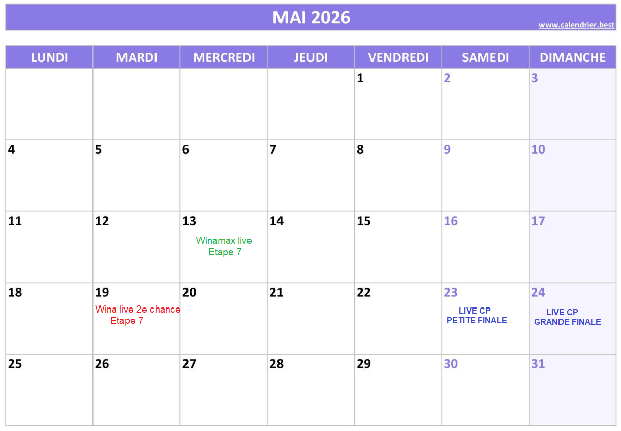 Le calendrier complet arrive bientot !